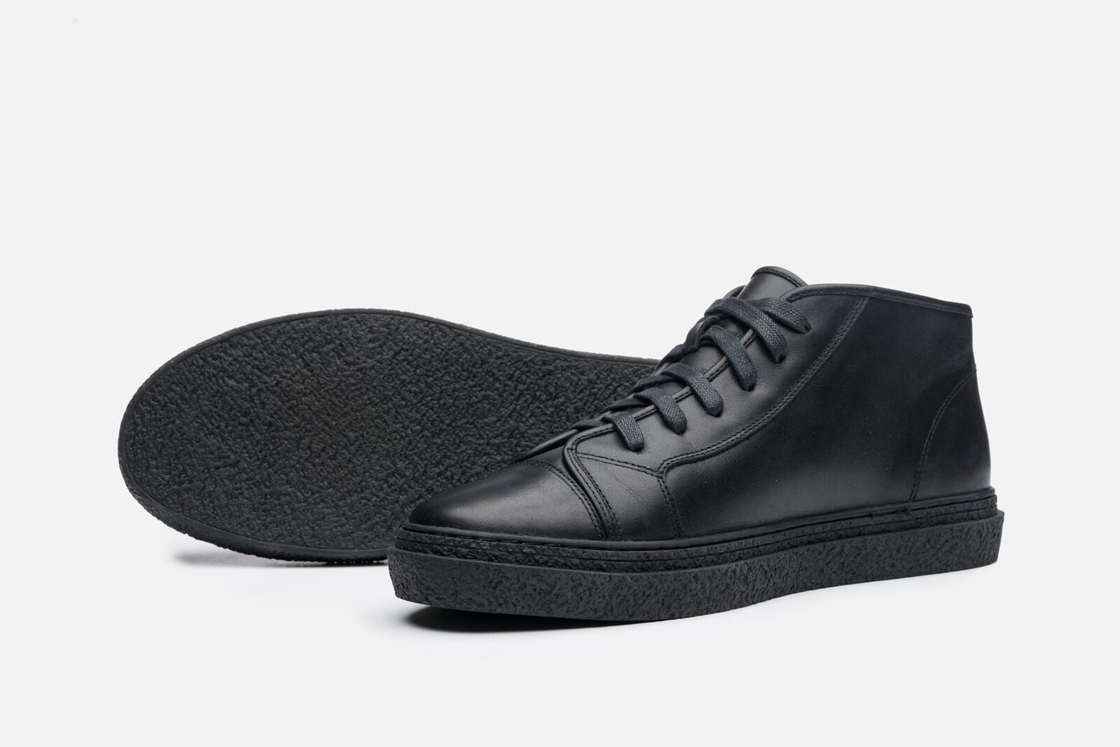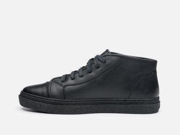 The ‘Kogi’ model features our soft hand feel, glazed leather in a contemporary mid top sneaker. Designed on a European last, our lace up stands apart with it's utilitarian silhouette. Leather lining. Custom beveled faux crepe rubber outsole.
