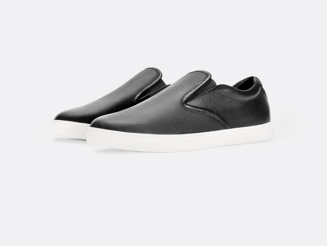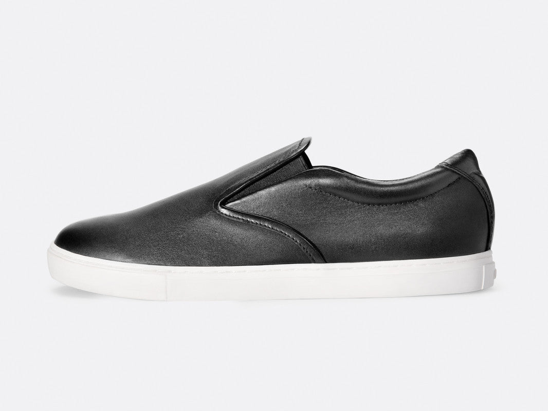 The ‘Reed’ model is our premium crafted slip on. Our glazed leather highlights the versatility of this understated sneaker. Black leather. Leather lining. Custom rubber outsole.