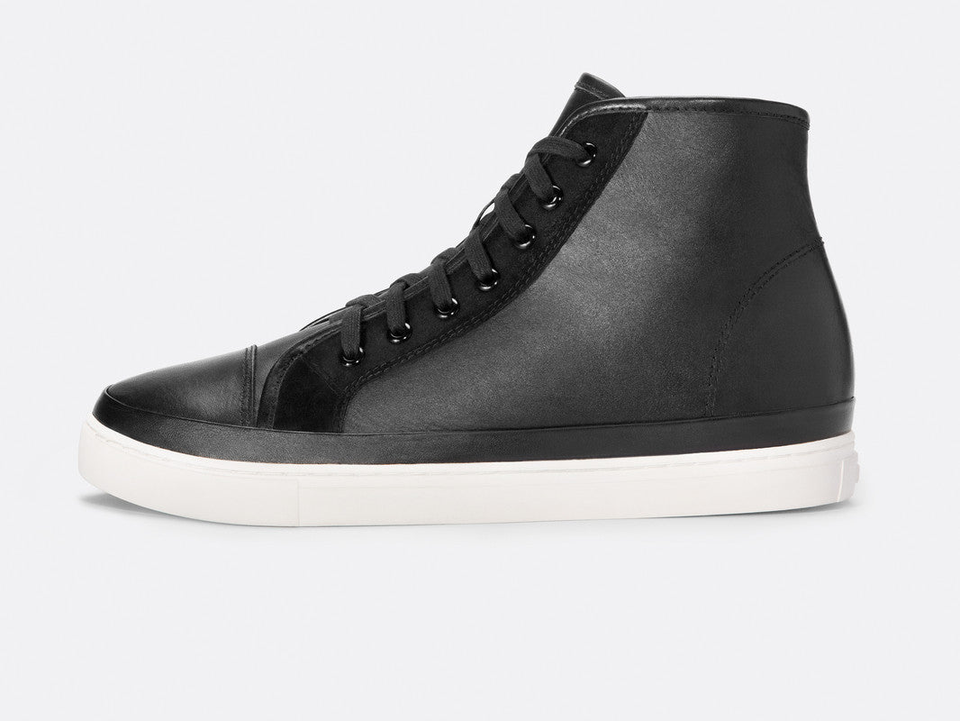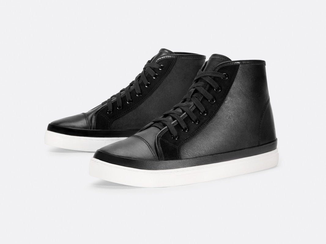 The ‘Tilden’ model is emblematic of our collection's understated aesthetic. Made with a soft hand feel, glazed leather, these high tops were designed to instantly enhance any contemporary wardrobe. Finished with a plush suede eyelet facing. Leather lining. Custom outsole.